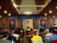 会场布置得庄严神圣,正中悬挂着师尊的法像,旁边悬挂着两幅色彩绚丽的法轮图形。会场正前方及后方分别悬挂着大型的中英文的会议主题横幅及“共同精进 整体提高”的横幅。学员们围绕着诉江案、向海内外华人讲真相及在正法中破除人的观念等几方面进行了深入的交流。发言的学员结合着自己在正法修炼中的亲身经历与体会,讲述了如何重视相互配合与整体提高、放弃自我、紧跟正法进程的体会。会后,学员们纷纷表示这次法会起到了互相促进与鼓励,共同精进的目的。同时会议的首尾发言及会后放映的纪录片都是围绕着“诉江”这一主题,使学员们对此在法理上有了更深的理解和认识。