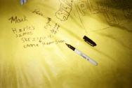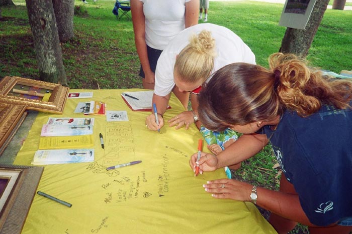 【明慧网2003年8月6日】看到有同修询问做条幅的问题,我们这里以前是先用打印机打出字(一张A4纸打一个字,也可以把一个字放大后打到几张纸上),然后把打出来的纸放到纸壳等有一定硬度的平面上,在纸壳上刻出字的阴文,再把纸壳放到条幅上用自喷漆喷。 这样速度很快,但会带来两个问题:一是字喷的不均匀,二是容易弄污条幅,而且房里油漆雾飘的到处都是。