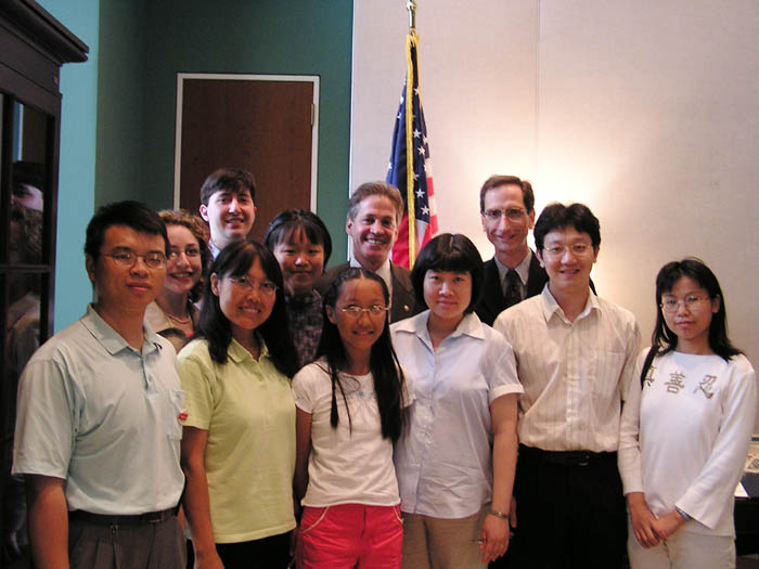 在我们拜访他们的办公室之前,我们一直和所有的议员办公室保持联系,并不断寄送最新资料。我们这次在华府拜访他们的主要目的是感谢我们的参、众议员对我们的支持和关注,并更加深入地讲清真相。所有的议员办公室都很积极友好地接待了我们,尤其当他们得知有一位明尼苏达州学员的母亲至今还被关押在中国的劳教所里。