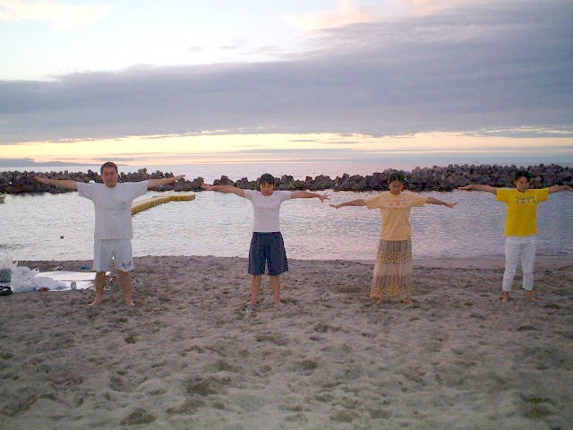 8月13日我们出发去了新泻。由于是第一次在野外宿营,有许多不足之处,但是孩子们还是过了一个快乐而充实的夏令营。孩子们每天基本上都能学法炼功。这几天的生活中,大孩子带着小孩子在沙滩上玩,在海里玩,在一起吃饭又一起去买东西,一起放焰火……。孩子们体现出的互相关心、互相忍让的整体协调融洽的关系,让我们这些大人看了叹服。