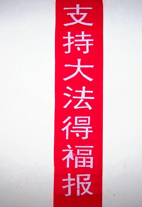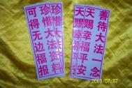 • 图片:大陆大法弟子制作的真相条幅和不干胶