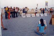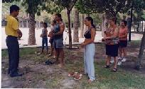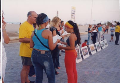 大法传入西班牙的时间比较晚,8月中旬,西班牙学员和葡萄牙学员利用暑假到西班牙各城市巡回洪法。第一个城市是塞格维亚,首先去市政府递交了呼吁书和真相资料,之后到博物馆公园炼功,发放传单。许多过往行人都被美妙的大法音乐所吸引,也有人当场便向学员学起功法。有两位以色列游客对大法产生了浓厚的兴趣,表示回去后一定要找当地炼功点学功。