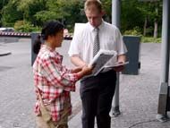 一位在这之前常在别处发真相传单的学员说:今天传单发得太快了,人们往往看完了所有的图片后,主动来索要真相文字资料。众多大幅图片的震撼力和效果完全两样啊。