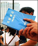 ![]() BBC图片:1999年7月21日,法轮功学员在上海人民广场上读《精進要旨》 |