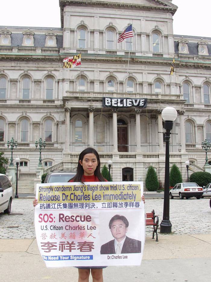 法轮功学员营救美籍李祥春和法轮功学员家人的汽车之旅车队于2003年9月12日抵达巴尔帝摩市,并在下午2:20在巴尔帝摩市市政厅正门举行了新闻发布会。