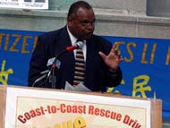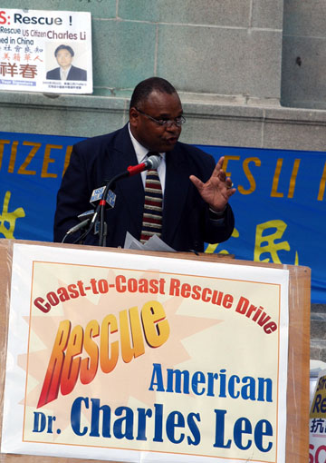 历经28天之久,自始于加州的“营救李祥春跨美汽车之旅”于9月10日中午来到了特拉华州威明顿市RODNEY广场。威明顿市议员THEOPALIS GREGORY主持了新闻发布会,呼吁营救因炼法轮功被中国非法判刑三年的美国公民李祥春。