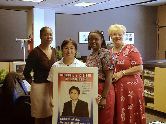 她为我们找来了一位负责人。这位负责人安排我们见一位相关的编辑。虽然由于种种原因,我们未见到那位编辑,但通过Mattie女士的行动,我们看到了美国人民的善良和正义,看到了他们对受迫害法轮功学员的同情和支持,看到了他们对邪恶迫害的谴责。