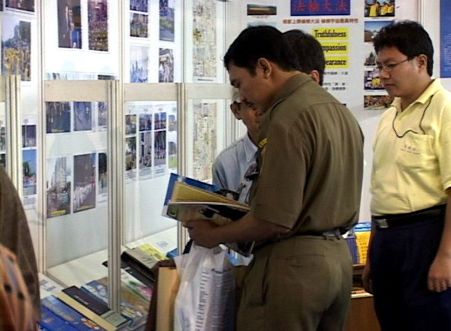 | 展观的人们要买炼功的CD回家炼 | 印尼的官员要买《转法轮》 | 看见炼功,就当场要学 |