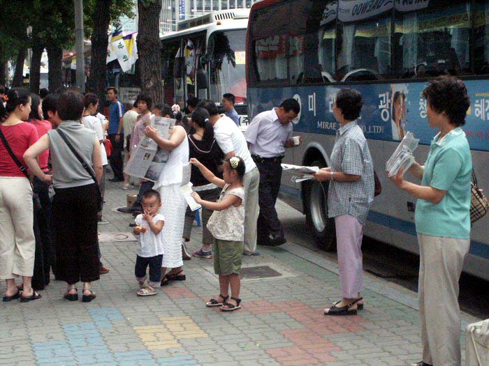 【明慧网2003年9月6日】8月31日下午,在汉城新村区厅火车站前,部分汉城大法弟子面向广大市民及各国游客,分别用中文和韩文揭露邪恶之首江泽民及其