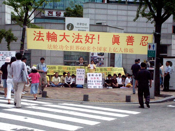 韩国汉城大法弟子街头揭露江氏暴行(图)