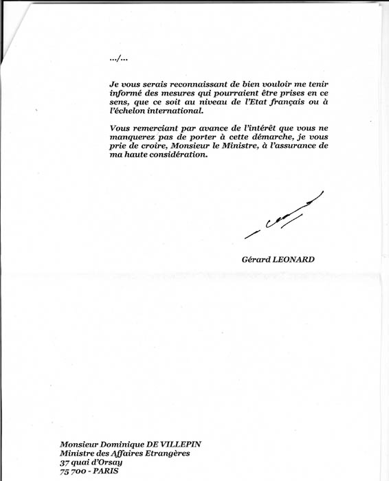 我想请您了解,我已与外交部长多米尼克-德-维尔潘先生沟通,提请他对采取所有政治和外交手段制止这种对人类基本权利的侵犯的必要性的重视。