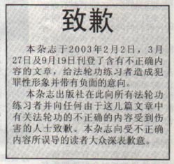 本杂志出版社在此向所有法轮功练习者并向任何由于这几篇文章中有关法轮功的不正确的内容受到伤害的人士致歉。本杂志向受不正确内容误导的读者大众深表歉意。”