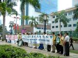 警察对这一活动态度良好,一个警察还竖起大拇指表示支持。三小时的活动中,下了两次雨,但是在场的法轮功学员没有任何一个人中途离场。