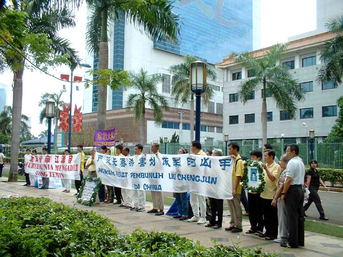 同时法扎也向到场媒体提到了江氏集团为继续镇压法轮功而新近大肆炒作的“陈福兆投毒害死17名乞丐与拾荒者”案,法扎说:“这个案件很明显是江泽民为了欺骗公众进行的造假,因为修炼真善忍的法轮功学员不可能做出这种没有道德的行为。”编造谎言、伪案来污蔑法轮功,使镇压合理化是江氏集团的一贯伎俩。两年前发生的已被国际社会公认为造假的“天安门自焚案”就是一个典型的例子。这次江氏集团利用喉舌新华社在12月31日这个时机抛出陈福兆杀人案用意很明显,就是为了转移舆论对法轮功学员刘成军被迫害致死的关注。印尼法轮功学员要求中国当权者停止对法轮功的造谣和污蔑。