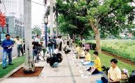 而中国大使馆工作人员则远远的地观望学员的活动。