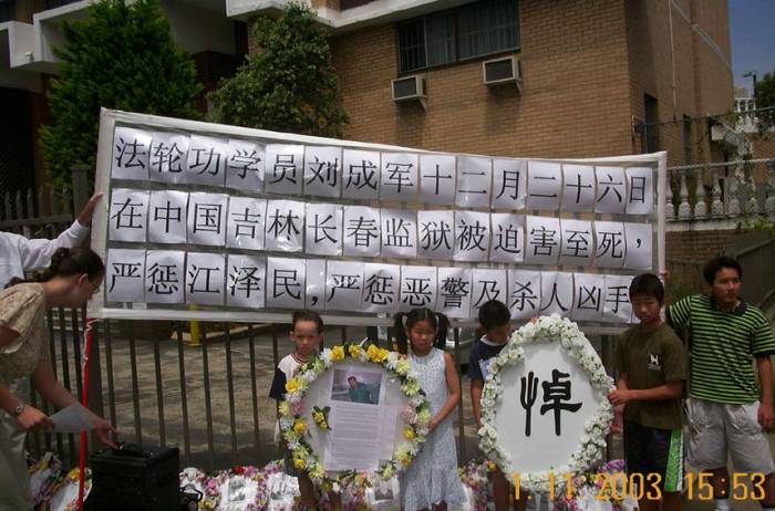 12月29日,新加坡法轮佛学会就刘成军被迫害致死一事致信中国驻新加坡大使馆。信中说,江泽民是这件事件真正的元凶,没有江氏的无理迫害,就不会有法轮功的和平讲真象活动。元凶江氏集团从来没有对法轮功讲过法律,而且强迫政权、政府、法律、公共媒体等直接参与迫害无辜受害者,信息封锁、剥夺人们的知情权,欺骗不明真象的民众。残害无辜者,必将受到历史和正义的审判!希望所有大使馆的工作人员了解目前在中国仍然继续着的对信仰真善忍的法轮功学员的灭绝人性的虐杀,分清善恶,作出正确的选择,不要再助纣为虐!