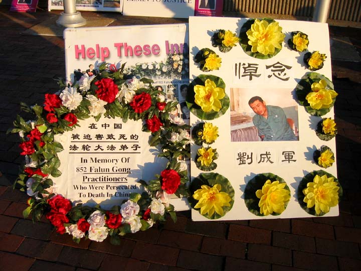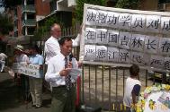 图片报导:悼念刘成军 加拿大卡尔加里学员中领馆前抗议
