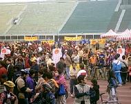山上的日子。1999年7.20之后,全国各地进京正法的大法弟子与日俱增,很多大法弟子住进北京门头沟附近的“九龙山”中。大家在这个暂时宽松的环境下,互相切磋,不断提高。我们每天接一批批弟子上山,再送一批批大法弟子下山证实大法。那里打水、买饭往返要走几个小时的山路,还必须提防警察的跟踪。大家都尽量不喝水,省下一口凉硬的馒头,留作下顿餐。在不到一张双人床大小的帐篷里要睡4、5人,不敢也不能翻身,为的是能为同修留一点空隙。一天几个同修早起下山打水、买饭至晚未归,我们一遍一遍登高眺望,直至夜幕降临……当同修们默默依偎,渐渐睡去时,突然,远处山谷传来呼喊声,使我们从梦中惊醒:“同修们快跑啊,警察搜山了!”这是一位同修在发现警察临近自己的帐篷时发出的喊声!那一刻他首先想的是更多的人。这喊声汇集了无数大法弟子,更加坚如磐石。大家当天走到天安门打坐炼功,那是1999年10月28日。时隔四年的今天,这震撼人心的喊声似乎就发生在昨天。
