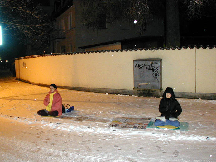图片报导:瑞典学员冒雪静坐悼念刘成军 呼吁严惩凶手
