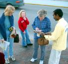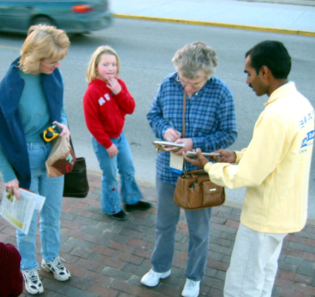 2003年12月29日,新年前,匈牙利的法轮功学员在布达佩斯火车站广场举办了法轮大法信息日活动。一个外地来的女孩儿看完了真相材料后迟迟不肯离开,问在她所在的城市里有没有炼功点。
