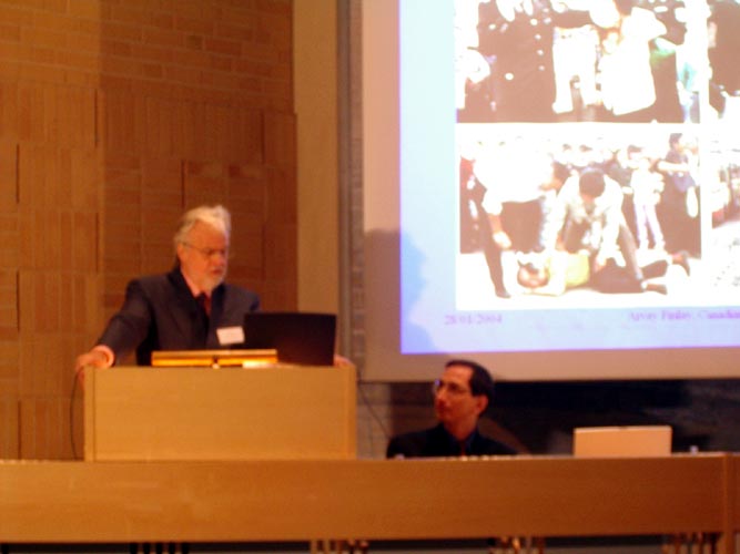 中国问题专家,加拿大律师安世力以题为「中国的法庭并非法庭」的报告,揭示了这一场灾难之所以能在中国发生的原因。他曾在中国工作19年,深知中国法律体系。他把江泽民称为「MR. GENOCIDE」(群体灭绝先生),指出虽然中国号称以法治国,但实质是以人治国,人大于法,法院受党委管辖,法律工作者最终服从于政治,而非服从于法律。所以在中国没有法律,没有宪法,没有法庭可以最终保护公民权利。江泽民的个人意愿凌驾于任何法律之上。
