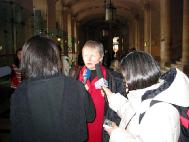 据嘉茜女士介绍,这些被拘捕的人只是因为他们是法轮功修炼者就被捕,只是因为穿或戴印有法轮大法字样的衣服、围巾或徽章等,有些人甚至没有穿或戴这类物品。在他们当中,甚至有不炼法轮功的法轮功学员的亲属。有一位来自英国的母亲在被拘捕期间的几个小时内无法与她12岁的儿子取得联系。另一位来自台湾的女士则因遭到法国警察的粗暴无理对待而当场受惊晕倒,以致被送到医院。