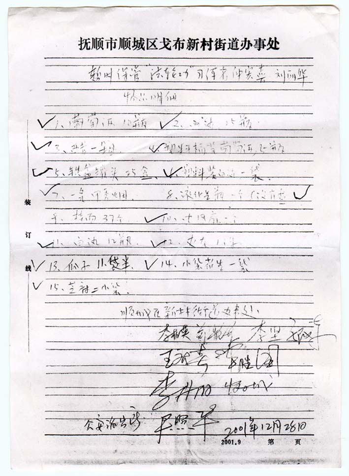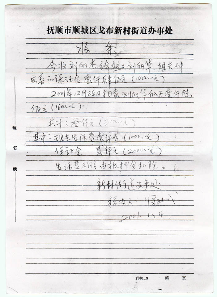 | 2001年12月28日抄家的收条 | 这是2002年1月4日,抚顺市顺城区戈布新村街道办事处勒索钱财的收条 |