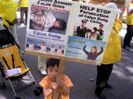 有位善心的太太看到我们手上拿的展板图片,问我们是否需要钱来帮助,她可以给我们一些钱,我们告诉她,我们站在这里是为告诉每位经过这里的人,一个真实在中国发生的残酷迫害事实,他们因为不愿意放弃信仰,被抄家、失去工作、或被非法拘捕后遭到残无人道的折磨致死、致残或致伤,我们需要您们明白真象后,能再告诉其他的人,让这场迫害早日停止。