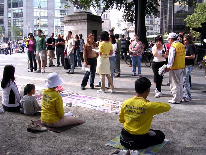 在这里,明白真象的人也成了活传媒,很多时候,你会听到经过法轮功真象展板前的人们,有这样的对话──“唉呀!这是怎么回事呀?”“告诉你,这是发生在中国大陆,对法轮功的迫害。”“怎么会发生这样的事?”“是啊,只是做个运动,就这样迫害,简直匪夷所思。”