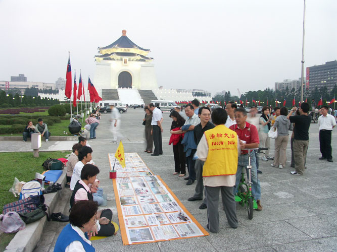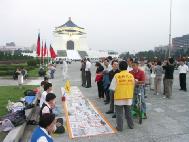 台湾法轮功学员双十国庆日在“中正纪念堂”园区洪法,吸引众多游人: