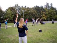![]() 学员交流修炼心得 | ![]() 法会现场 | ![]() 集体炼功 |