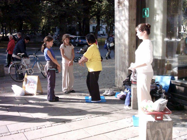 在阿比特兹(Arbetets)博物馆里,法轮功极受欢迎,许多人前来索取传单而且当场就想要学功。稍后在图书馆外,许多路人被这套祥和的功法所吸引。人们表示镇压法轮功是错误的。一位男士非常有兴趣,因此立刻進到图书馆去借了一本《法轮功》。