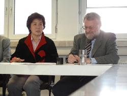 熊伟一下飞机,就受邀来到国际人权协会法兰克福总部,向帮助她重获自由的人权工作者表示感谢,讲述了她被捕后转辗清河看守所,北京劳教人员调遣处和北京女子劳教所的经历。