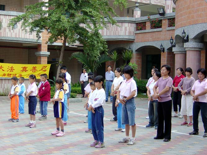 行政院在推广全民运动,而且附近几所学校也有在推广法轮功。我们得到行政院体委会核准在学校推广法轮功,使师生身心都能够受益。早上炼功点主要针对家长及学生推广,他们炼了以后一些慢性病都有一个程度改善,学生在学校表现也比较好。