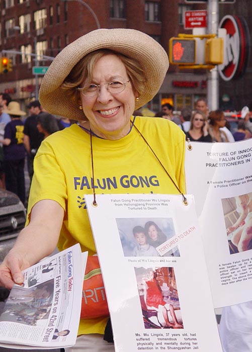 一次我们在一个小店买水果,店主人正在拨电话,当她看到我们身穿黄色的T恤衫手里拿着法轮功真象报纸时,马上对她的雇员(好像是个中国人)说:你知道吗?他们是炼法轮功的。你知道在中国迫害法轮功的事吗?那位雇员说不知道。于是这位店主人开始给她的这位雇员讲法轮功在中国所遭受的迫害。这时我们赶快把手里真象材料送给了她的雇员。在我们后面排队的一位美国妇女马上把手伸过来说:也给我一份材料好吗?我们赶忙把真象报纸递给了她。当时我们深受鼓舞。为有这样多的纽约人想了解真象,并在了解真象后还帮助我们向别人讲真象而感到由衷的高兴。