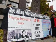 新闻发布会后,法轮功学员举着写有“法轮大法”,“真善忍”等字的各种中英文横幅和要求法办江罗刘周的标语,走上了附近交通繁忙的街头,让更多的加拿大人民了解这场迫害的真象,向全社会表达要求停止迫害,法办元凶的呼吁。