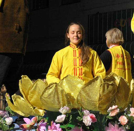 其中一位使劲鼓掌的西方女观众很开心的告诉记者,她以前没有听说过法轮大法。不知怎的,今天见到法轮大法的队伍时觉得很好;一种很舒服的、喜悦的感觉油然而生。