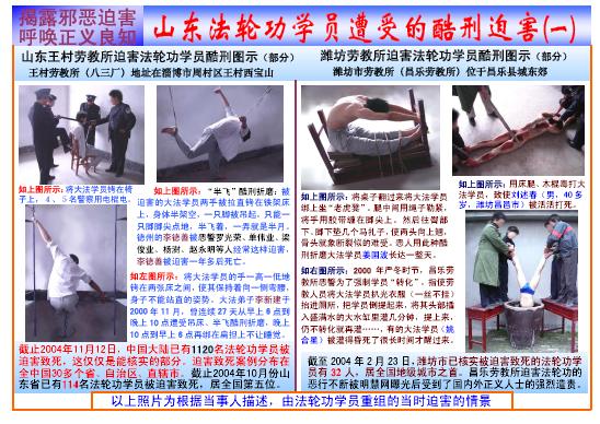 不干胶贴传单:山东法轮功学员遭受酷刑迫害图示(一)