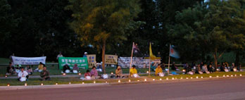 图片:澳洲弟子在堪培拉中使馆前烛光纪念4.25四周年