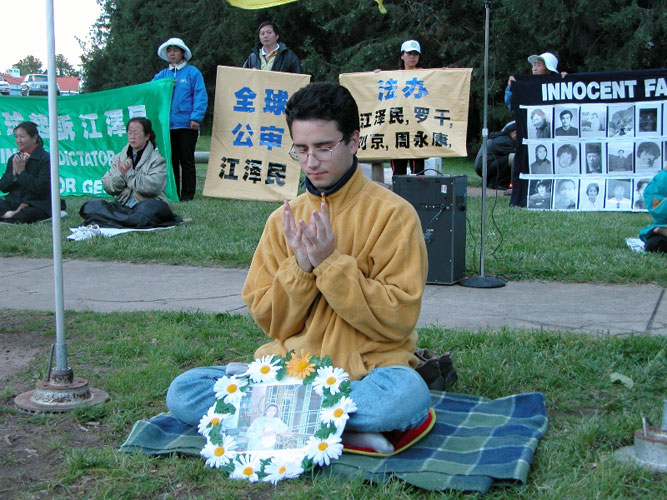 【明慧网2004年11月15日】二零零四年十一月十三日傍晚,澳洲法轮功学员聚集在堪培拉中国大使馆前烛光悼念最近两个月被
