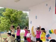 法轮功学员受邀参加此次运动会,在运动会现场演示五套简单易学的功法并介绍法轮功如何有益身心升华。在学员祥和的演示五套功法带动下,司令台上的刘校长及各家长委员当场学炼。