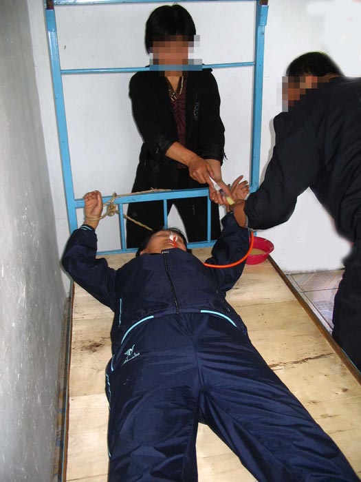更有甚者,为了达到目地,他们让吸毒犯、同性恋犯人采用卑鄙手段侮辱、折磨大法弟子,如:揪住乳房使劲往前拽,拽得乳房直往下滴血,揪着头发将头往墙上撞,拿螺丝刀捅阴道,手段残忍、卑鄙,令人发指。有不少被“转化”的大法学员就是在这样的残酷折磨下在神智不清时,被迫写了转化书、保证书的。