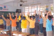 班导还利用中午休息时间让我们打坐,并在早自习时间让我们读法,班导还利用下午最后一节,让我们看李洪志老师讲法的录影带,班导为了让我们学法,自掏腰包一人买一本《转法轮》给我们看,班导说能看到这本书,是前世修来的福气呢!这本书,令我获益匪浅,真是谢谢班导!自从炼了法轮大法,我的课业进步了,尤其是体育,更是突飞猛进,运动会时,从以前的候补到现在的第3棒,内心真是欣喜若狂,但我赶快告诉自己,不能起欢喜心。在打坐时,我若认真打坐,便会看到蓝色与白色的花纹及隧道,但我不认真打坐时,便什么也看不到,不可以睡着或打瞌睡否则白炼,我必须愈来愈精进才行!看到李洪志老师大公无私、救度众生的精神,真是让人赞叹,因此我要把握当下,常看《转法轮》,从五年级到现在,我已看过5遍《转法轮》,我还要介绍给爸妈、家人、邻居看,帮助更多人身心健康。”