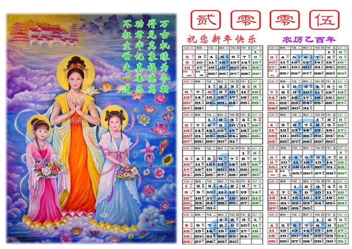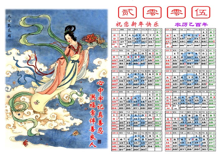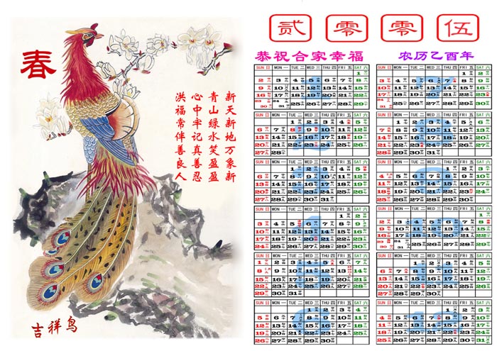• 2005年日历卡片一款;2005年鸡年吉祥卡片一款