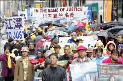 ![]() 图:法轮功的支持者们在麦迪逊大道上游行 |