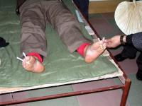 由于腋窝拧的洞太大,又造成感染,肉长不上了,最后卫生所处理不了,狱医梁大夫把黄跃东带到九台市医院医治。当大夫、护士问其原因,梁为掩盖九台劳教所犯罪事实,撒谎说是汽车撞的。黄跃东当时就告诉大夫:“不是车撞的,我是法轮功学员,是被它们迫害的。”大夫与护士感到很吃惊:怎么这样残忍!如不亲眼所见,很难相信。