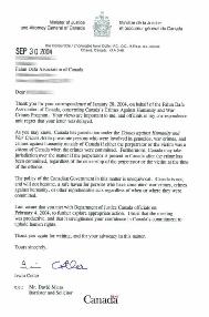 感谢你代表加拿大法轮大法学会于2004年1月20日就关于使用“加拿大反人类罪和战争罪方案”的来信。你的观点对我很重要,很遗憾我们通讯部门的官员不能及时回复你的来信。
