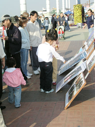 【明慧网二零零四年十一月六日】2004年10月31日,韩国仁川月尾岛上展开了文化庆祝会。每年都会有很多人来观光,月尾岛靠近韩国的西海岸,迷人的风景,使人心旷神怡,也是人们在闲暇度过悠闲时光的好去处,这正是法轮功学员们广泛讲清真相的最佳时期和地点。
