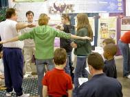 和学生们一起来到国际节的还有许多老师和家长,通过学员的介绍,他们也对法轮大法真象有了不少了解。几乎所有了解真象的人都对在中国遭受迫害的法轮功学员表示了同情,对大法在中国遭受的残酷镇压表示震惊,对大法的美好表示了赞许。还有一些家长当场就带着自己的孩子开始学炼法轮功。有一位西方家长在和学员交流之后,对大法产生了强烈的兴趣,还特地叫来三个孩子,一起跟着学员炼动功,并表示会支持大法和法轮功学员。