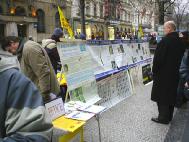 许多人驻足观看展板内容并提出许多问题,如:“为什么法轮功学员被迫害?”学员们向他们讲述了法轮功在中国的洪传和中共江氏集团如何出于嫉妒和对人们信仰“真善忍”的恐慌而发动了这场残酷的镇压,有上百万法轮功学员因此被非法逮捕、关押或遭到中国公安的虐待,人权运动人士已证实并记录了三万八千件酷刑或严重虐待的个案,更多的人生活在巨大的压力之下。江××意图“消灭”法轮功并且命令虐杀法轮功学员后可谎称是自杀。江氏集团利用媒体持续不断的诋毁法轮功,并且严厉阻止任何有关呼吁终止它所犯下的人权侵犯罪行以及全球各地要将它送上法庭的诉讼案等信息的流通。